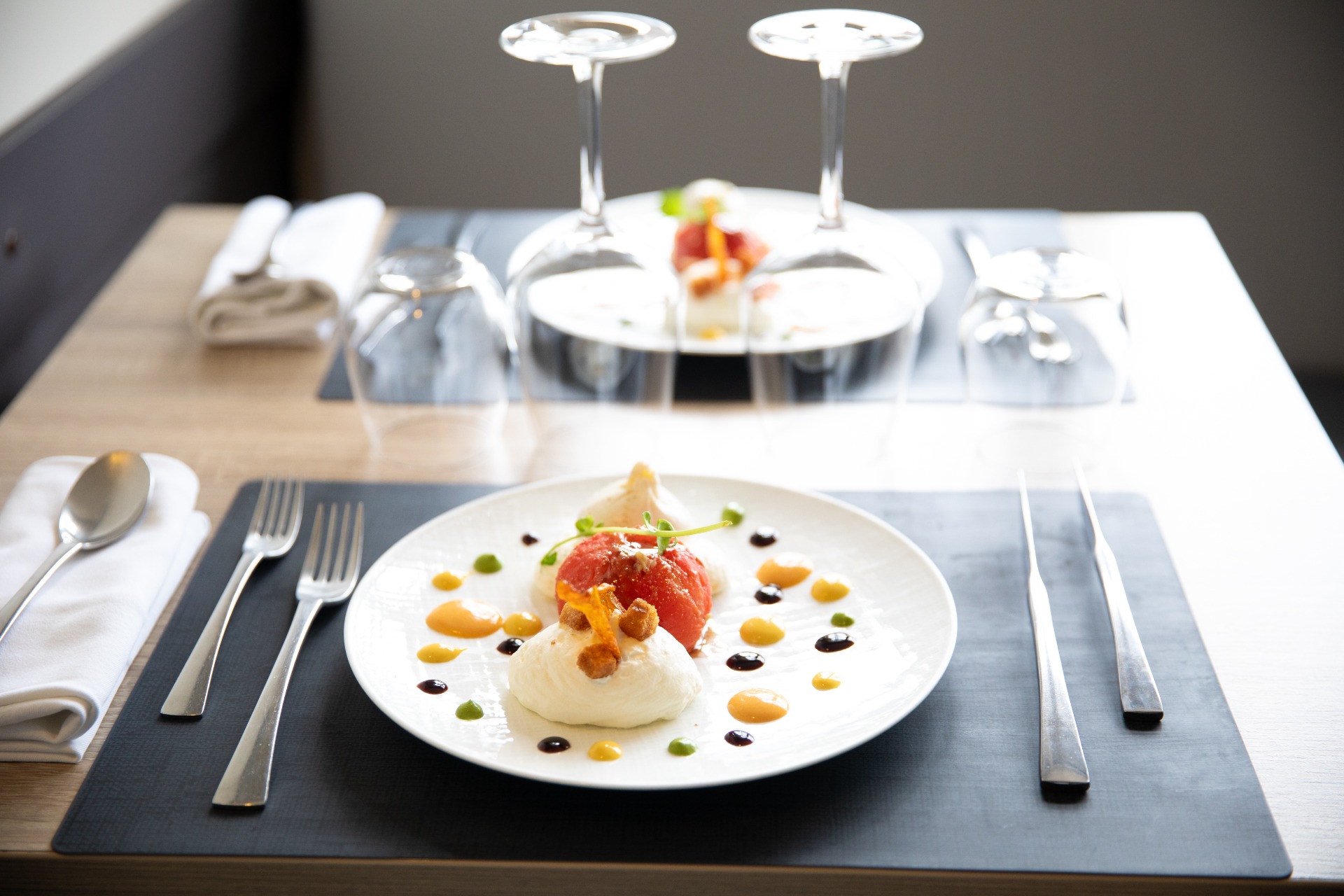 Filet de bœuf à la plancha, émulsion Béarnaise Pomme pont neuf, Jeune oignon 36€